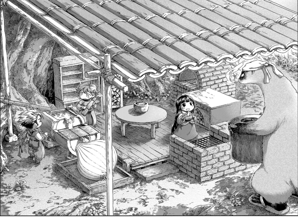 彼女たちが暮らす世界では、木の洞に住んだり、亀の背中に乗って観光したり、体より大きな野菜を切ったり――すべてが当たり前のことです。